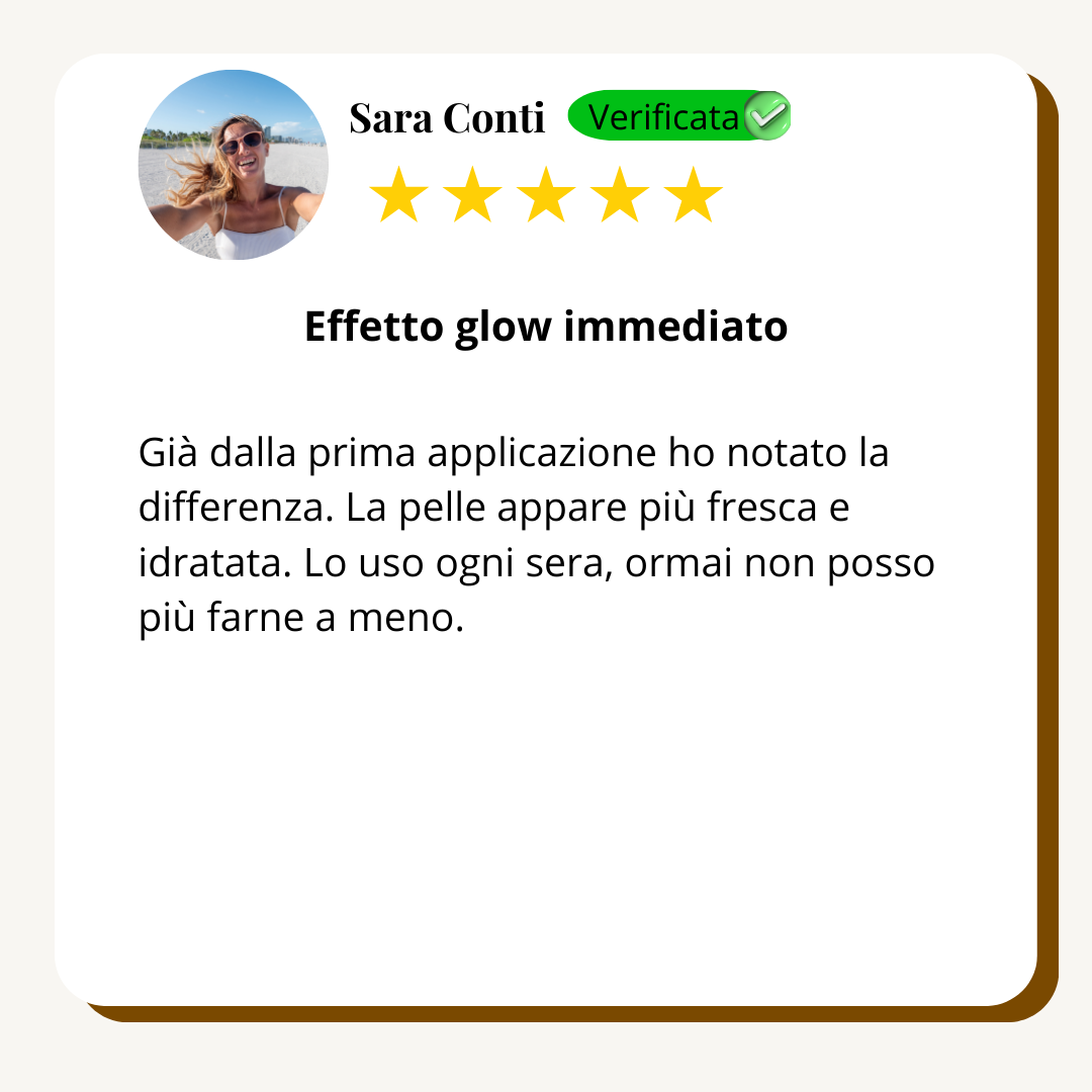 Già dopo la prima applicazione noterai una pelle più luminosa e levigata. Ogni giorno successivo amplifica questa radiosità.